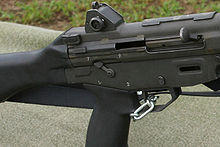 In accordance with the "Iraq Revival Support Law on Special Measures on Land for the U.S. Military" (イラク復興支援特措法) or the "Self-Defense Forces Iraq Dispatch Law," a selector switch has been manufactured and installed on the left hand side of the lower receiver for ambidextrous use for rifles issued to JSDF members in Iraq.[17] However, this is only a temporary modification and the rifle must be returned to its original state (with the selector switch on the right side only) when it is returned to Japan.