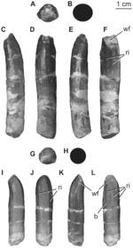 Two teeth were preserved. One tooth was discovered in the quarry during excavation and a second was found as field jackets were opened during preparation of the specimen at Shijiazhuang University. The teeth are attributed to the holotype individual based on their close association with other bones and lack of evidence for transport from another site. Both teeth are well preserved, exhibiting wrinkled enamel. The crowns are subcylindrical, with slenderness indices of 3.46 and 3.36, which is slightly more slender than originally described by Pang and Cheng and intermediate in slenderness between broad and narrow-crowned sauropods (e.g., Euhelopus and Phuwiangosaurus). Neither tooth is strongly twisted along its length as in the upper teeth of brachiosaurids.[2]