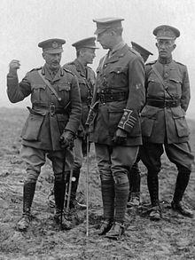 Gough was appointed GOC of the 7th Division on 18 April 1915, after its previous commander, Thompson Capper, had been wounded.[74] The division was part of Rawlinson's IV Corps, itself part of Haig's First Army; on giving him his new appointment, Haig informed him (Haig diary 18 April 1915) about how Rawlinson had attempted to have Joey Davies sacked from command of 8th Division after Neuve Chapelle and how Davies and his staff did not trust Rawlinson.[75] Gough may have been appointed as a counterbalance to Rawlinson, with whom Haig had a wary relationship.[76] Gough and his division were in reserve at Second Ypres (22 April).[77]