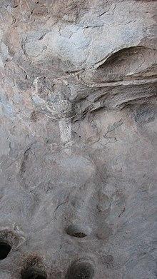 The first paintings made at Hueco Tanks were done by members of the Desert Archaic Culture, and depicted abstract designs.[10] These were created between 6000 and 3000 B.C.[10] Between 3000 BC and 450 A.D., pictures of animals and humans were drawn on the rocks.[18]