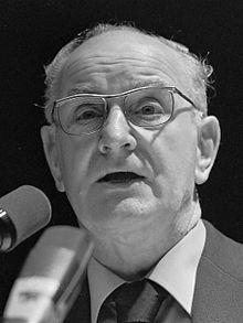 Although Scanlon formally abandoned communism in 1954, he continued as a "broad left" candidate within the union – winning the leadership in 1968. Scanlon and TGWU leader Jack Jones were known by the press as "The Terrible Twins" for their opposition to both Labour Party and Conservative Party attempts to restrict the power of the unions – Labour prime minister Harold Wilson once famously telling him to "get your tanks off my lawn."[1] In 1969 Home Secretary James Callaghan requested action that would hinder Scanlon's career, which was raised in cabinet, and further discussed with Secretary of State for Employment Barbara Castle. A plan for detrimental leaks to the media was placed in the Foreign Office propaganda Information Research Department, and its head prepared a briefing paper. However information about how this was effected has not been released under the thirty-year rule under a section of the Public Records Act permitting national security exemptions.[2]