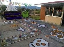 Like many indigenous American groups, Huichols have traditionally used the peyote (hikuri) cactus in religious rituals. Huichol practices seem to reflect pre-Columbian practices particularly accurately. These rituals involve singing, weeping, and contact with ancestor spirits. "It is Wirikuta, where the Huichol go each year to collect peyote."[25] "Before reaching Wirikúta, their final destination, they pass by the sacred springs of Tatéi Matiniéri ("Where Our Mother Lives"), the house of the eastern rain goddess. They cross steppes. The first one is the Cloud Gate; the second, Where the Clouds Open."[26] This pilgrimage takes place annually as a desire to return to where life originated and heal oneself. The Huichols assume roles of gods along the trail that they usually take by foot. Upon arrival in Wirikuta, the hunt begins and the first cactus that is found is shared among everyone. Then they harvest enough peyote for the year (since they only make the trip one time every year). After the work is done, they eat enough peyote (a hallucinogen) to have visions. Because of the visions and effects of the plant, the shaman is alleged by the Huichols to be able to speak to the gods and ensure the regeneration of the Huichols' souls.[27]