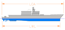 - Length at the waterline (LWL) is the length from the forwardmost point of the waterline measured in profile to the stern-most point of the waterline.