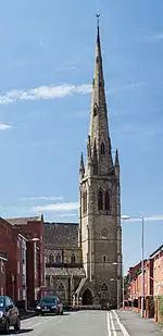 St Wilfrid's Roman Catholic Church, Birchvale Close (formerly Bedford Street), is an early work of A. W. Pugin: the tower is incomplete and the church is a good example of early Gothic Revival work.[46]