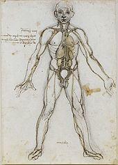 Anatomy has served the visual arts since Ancient Greek times, when the 5th century BC sculptor Polykleitos wrote his Canon on the ideal proportions of the male nude.[39] In the Italian Renaissance, artists from Piero della Francesca (c. 1415–1492) onwards, including Leonardo da Vinci (1452–1519) and his collaborator Luca Pacioli (c. 1447–1517), learnt and wrote about the rules of art, including visual perspective and the proportions of the human body.[40]