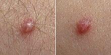 Skin warts are most common in childhood and typically appear and regress spontaneously over the course of weeks to months. Recurring skin warts are common.[26] All HPVs are believed to be capable of establishing long-term "latent" infections in small numbers of stem cells present in the skin. Although these latent infections may never be fully eradicated, immunological control is thought to block the appearance of symptoms such as warts. Immunological control is HPV type-specific, meaning an individual may become resistant to one HPV type while remaining susceptible to other types.
