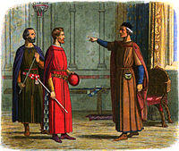 In 1294 the French king declared the English duchy of Aquitaine forfeit, and war broke out between the two countries.[28] Edward I embarked on a wide-scale and costly project of building alliances with other princes on the Continent, and preparing an invasion.[29] When the king, at the parliament of March 1297 in Salisbury, demanded military service from his earls, Roger Bigod, Earl of Norfolk, refused in his capacity of marshal of England. The argument was that the king's subjects were not obliged to serve abroad if not in the company of the king, but Edward insisted on taking his army to Flanders while sending his earls to Gascony.[30]