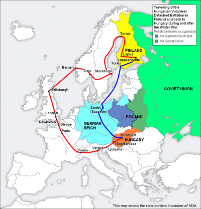 When the Winter War broke out between Finland and the Soviet Union, many Hungarians felt great sympathy towards the Finns and wanted to help them.[4]