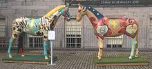 In 2011 a lifesize model of a horse, painted by young people aged 10–18 was placed outside the front of the building. This was joined by a second one in 2012. The models are made of fibreglass, and are taken inside at night. The art installation was inspired by the song Horse Outside by the group The Rubberbandits.[7]