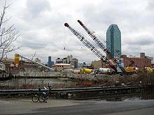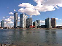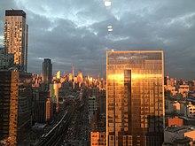 In 2001, the neighborhood was rezoned from an industrial neighborhood to a residential neighborhood, and the area underwent gentrification, with developments such as Hunter's Point South being built in the area.[15] Since then, there has been substantial commercial and residential growth in Long Island City, with 41 new residential apartment buildings being built just between 2010 and 2017.[16][17] A resident of nearby Woodside proposed establishing a Japantown in Long Island City in 2006, though this did not occur.[18] By the mid-2010s, Long Island City was one of New York City's fastest-growing neighborhoods,[19]