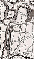 Dutch Kills was a hamlet, named for its navigable tributary of Newtown Creek, that occupied what today is Queens Plaza. Dutch Kills was an important road hub during the American Revolutionary War, and the site of a British Army garrison from 1776 to 1783. The area supported farms during the 19th century. The tributary of the same name connected to Sunswick Creek at its north end, which facilitated commerce in the region. The canalization of Newtown Creek and the Kills at the end of the 19th century intensified industrial development of the area, which prospered until the middle of the 20th century. The neighborhood is currently undergoing a massive rezoning of mixed residential and commercial properties.[54][55]