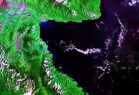 Huon Gulf is a large gulf in eastern Papua New Guinea. It is bordered by Huon Peninsula in the north. Both are named after French explorer Jean-Michel Huon de Kermadec. Huon Gulf is a part of the Solomon Sea. Lae, capital of the Morobe Province, is located on the northern coast of the gulf.