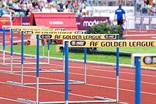- The barriers used in human track and field hurdling vary. A bar firmly attached to two posts is used for long distances, while a light metal frame on a stand is used for sprint hurdling.