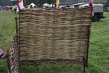 - Traditional hurdles are made from wattle, usually of hazel or willow. Hurdle-making is a traditional woodland craft, done by placing upright sticks in holes in a log and weaving split branches between them. Historically they were used to pen livestock or to separate land in open field systems, but they are now popular as decorative fencing for gardens. In medieval England such a hurdle was sometimes used as a makeshift sledge, to which a prisoner was tied to be dragged behind a horse to a place of execution.[1]