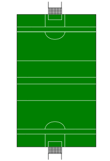 A hurling pitch is similar in some respects to a rugby pitch but larger. The grass pitch is rectangular, stretching 130–145 metres (140–160 yards) long and 80–90 m (90–100 yd) wide. There are H-shaped goalposts at each end, formed by two posts, which are usually 6–7 metres (20–23 feet) high, set 6.5 m (21 ft) apart, and connected 2.5 m (8.2 ft) above the ground by a crossbar. A net extending behind the goal is attached to the crossbar and lower goal posts. The same pitch is used for Gaelic football; the GAA, which organises both sports, decided this to facilitate dual usage. Lines are marked at distances of 14 yards, 21 yards and 65 yards (45 yards for Gaelic football) from each end-line. Shorter pitches and smaller goals are used by youth teams.[9]
