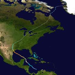 Hurricane Carla ranks as the most intense U.S. tropical cyclone landfall on the Hurricane Severity Index.[1] The third named storm of the 1961 Atlantic hurricane season, Carla developed from an area of squally weather in the southwestern Caribbean Sea on September 3. Initially a tropical depression, it strengthened slowly while heading northwestward, and by September 5, the system was upgraded to Tropical Storm Carla. About 24 hours later, Carla was upgraded to a hurricane. Shortly thereafter, the storm curved northward while approaching the Yucatán Channel. Late on September 7, Carla entered the Gulf of Mexico while passing just northeast of the Yucatán Peninsula. By early on the following day, the storm became a major hurricane after reaching Category 3 intensity. Resuming its northwestward course, Carla continued intensification and on September 11, it was upgraded to a Category 4 hurricane. Later that day, Carla weakened slightly, but was still a large and intense hurricane when the storm made landfall near Port O'Connor, Texas. It weakened quickly inland and was reduced to a tropical storm on September 12. Heading generally northward, Carla transitioned into an extratropical cyclone on September 13, while centered over southern Oklahoma. Rapidly moving northeastward, Carla's remnants reached the Labrador Sea, Canada and dissipated on September 17, 1961.