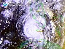 Hurricane Charley near peak intensity shortly before landfall in Florida on August 13 | |