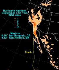 - ^ a b Roth, David (2008). "Hurricane Kathleen – September 7–12, 1976". Tropical Cyclone Rainfall Climatology. Hydrometeorological Prediction Center. Retrieved 2008-05-15.