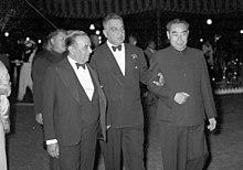Prime Minister Suhrawardy was invited by the Soviet Union for an informal visit but he declined.[40] In 1956, Prime Minister Suhrawardy became the Pakistan's first Prime Minister to visit China.[41] Suhrawardy's India policy was at times critical.[42] He demanded a fair share of water sharing on transboundary rivers.[43] Suhrawardy visited Afghanistan and pledged to work for regional peace, decolonization and stability. Suhrawardy also visited Japan and felt the East Asian country was model to emulate in development. He addressed a joint sitting of the Philippines Congress during which he expressed support for SEATO and continued to call for decolonization.[43]