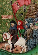 The Hussites initially campaigned defensively, but after 1427 they assumed the offensive. Apart from their religious aims, they fought for the national interests of the Czechs. The moderate and radical parties were united, and they not only repelled the attacks of the army of crusaders but crossed the borders into neighboring countries. On March 23, 1430, Joan of Arc dictated a letter[9] that threatened to lead a crusading army against the Hussites unless they returned to the Catholic faith, but her capture by English and Burgundian troops two months later would keep her from carrying out this threat.