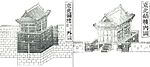 For an unknown reason, the original Chinese terms 砲樓 (pào lóu, "fortified tower, blockhouse") and 鋪樓 (pù lóu, "platform") have been alphabetized by the same Hangul 포루, generating several naming collisions. In accordance with the authoritative Hwaseong Seongyeok Uigwe (1801), it is convenient to maintain different names for different kinds of fortification structures. This leads to alphabetize 砲樓 as 'GunTower' and 鋪樓 as 'SentryPost'. The following gallery shows how different these structures are in their design and their usefulness.