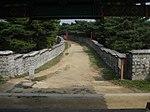 Nowadays, the intra muros Suwon requires large entries for the modern roads needed by visitors and inhabitants. These large roads were built during the period when the wall was down, and the 1975 reconstruction had no choice but to preserve these roads. For three of them, the rampart walk has been rebuilt as a bridge between two neighboring structures: