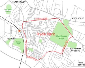 It sits in the Headingley and Hyde Park ward of Leeds City Council, though the boundary between Headingley and Hyde Park is unclear; Victoria Road is usually considered to be its northern limit. Unlike the nearby areas of Burley, Headingley and Woodhouse, Hyde Park was not historically a village so its boundaries are inevitably vague. Local people would largely consider Victoria Road, Cardigan Road, Alexandra Road (or Burley Road) and the eastern (University) edge of Woodhouse Moor to be the boundaries of Hyde Park.