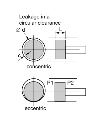 As can be seen from the formula, the clearance height c has much more influence on the leakage than the length.
