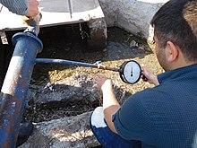 It is usually measured as a liquid surface elevation, expressed in units of length, at the entrance (or bottom) of a piezometer. In an aquifer, it can be calculated from the depth to water in a piezometric well (a specialized water well), and given information of the piezometer's elevation and screen depth. Hydraulic head can similarly be measured in a column of water using a standpipe piezometer by measuring the height of the water surface in the tube relative to a common datum. The hydraulic head can be used to determine a hydraulic gradient between two or more points.