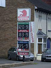 The Finance Act 1908 introduced a petrol duty in the UK, with the rate being set at 3d (£0.013) per UK gallon, bringing the price of a typical UK gallon to 1s 1½d (equivalent to £6.84 in 2019).[2][3]
