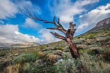 The height is 1,026 m (3,366 ft)[2] at Evzonas and the length is 16 km (9.9 mi) between Athens and the Saronic Gulf and 6 to 7 km from east to west. In the ancient times, the highest point was known as Mega Ymittos and the southern Elattona (Ελάττονα) and Anydro Ymitto (Άνυδρο Υμηττό) (today Mavrovouni (Μαυροβούνι meaning black mountain) and Kontra (Κόντρα). It was noted for its thyme honey.[1] Marble has been quarried since antiquity.[1] The neighboring communities that surround the mountain are Athens (municipality), Zografou, Kaisariani, Vyronas, Ilissia (a region of Zografou), Ymittos, Ilioupoli, Argyroupoli, Elliniko, Glyfada, Voula and Vouliagmeni in the west, Varkiza, Vari, Markopoulo and Paiania to its east, and Papagou, Cholargos, Agia Paraskevi, Gerakas and Glyka Nera. Most of the forest is in the north, and much of the mountain is rocky, deforested, grassy and made out of limestone.