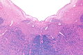 - Micrograph showing the hypoglossal nucleus. H&E-LFB stain.