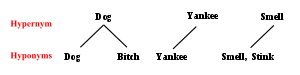 Hyponymy is the most frequently encoded relation among synsets used in lexical databases such as WordNet. These semantic relations can also be used to compare semantic similarity by judging the distance between two synsets and to analyse anaphora.