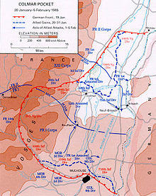 The November offensives of the French First Army and the U.S. Seventh Army had collapsed the German presence in Alsace to a roughly circular pocket around the town of Colmar on the Alsatian Plain. This Colmar Pocket contained the German 19. Armee. As the southernmost corps of Allied forces in northwestern Europe, the French 1st Army Corps now faced the Rhine at Huningue and held Mulhouse and the southern boundary of the Colmar Pocket. A French offensive in mid-December designed to collapse the Colmar Pocket failed for lack of offensive power and the requirement to cover more of the Allied front line as U.S. units were shifted north in response to the Ardennes Offensive. On January 1, 1945, the Germans launched Operation Nordwind, an offensive with the goal of recapturing Alsace. After the U.S. Seventh and French First Armies had held and turned back this offensive, the Allies were ready to reduce the Colmar Pocket once and for all.