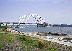 The Interstate 74 bridge as seen from the Iowa side of the Mississippi River | |