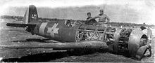In June 1942, the operational IAR fighter forces on the eastern front, combined into the Flotilla 2 Vânătoare consisted of Grupul 8 Vânătoare, commanded by Cdr. Lt Col E. Pîrvulescu, and included Escadrila 41, Escadrila 42 and Escadrila 60 with 12 IAR 80As each. During the Battle of Stalingrad, on 12 September, Grupul 8 Vânătoare IAR 80Bs (along with Grupul 7 Vânătoare's Bf 109s) claimed to have shot down seven Yaks but they lost two IARs.[13] Grupul 8 moved at the end of September, to Karpovka, joining Grupul 7, equipped with Bf 109s.[14] On 12 and 13 December, Grupul 6 used its IAR 81s to support the German counterattack by the Panzergruppe Hoth of the Heeresgruppe Don, from Kotelnikovo towards Stalingrad.[15] In the summer of 1943 the FARR's IAR-80s were transferred to Romania for air defense duties, where they were used in combat against the United States Air Force. USAAF attacks were directed at the oil refineries installation around Ploiești, in particular. On 1 August 1943 the IAR 80 faced the Consolidated B-24 Liberator heavy bomber for the first time. There were 178 B-24s from 9th USAAF, part of Operation Tidal Wave. The IAR 80Bs of Escadrila 61 and 62 of Grupul 6 Vânătoare, as well as IAR 80Cs from the newly formed Escadrila 45 of Grupul 4 Vânătoare,[16] together with the Bf 109Gs from Esc. 53 and Bf 110s from the Romanian night fighter squadron, dived on the low-flying, four-engined bombers, belonging to five USAAF bomber groups (the 44th, 93rd, 98th, 376th and 389th). The Americans lost – in combat or on the way back – 51 bombers. Only 89 reached their bases, of which only 31 were serviceable for a mission the next day. The Romanian pilots claimed 25 certain and probable victories for just two losses,[12] one IAR 80 B and one Bf 110C. According to Romanian statistics, IARs and Messerschmitts were confirmed as having shot down ten B-24s, with two probables.[17]