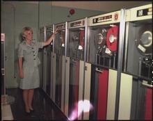 The IBM 729 Magnetic Tape Unit was IBM's iconic tape mass storage system from the late 1950s through the mid-1960s. Part of the IBM 7 track family of tape units, it was used on late 700, most 7000 and many 1400 series computers. Like its predecessor, the IBM 727 and many successors, the 729 used 1/2 inch (12.7 mm) magnetic tape up to 2400 feet (730 m) long wound on reels up to 10½ inch (267 mm) diameter. To allow rapid tape acceleration (and thus reduced seek/access times), long vacuum columns were placed between the tape reels and the read/write heads to absorb sudden increases in tape tension which would otherwise break the tape. Write protection was provided by a removable plastic ring in the back of the tape reel.