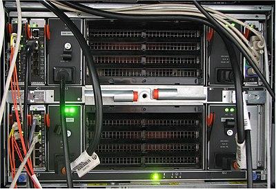 - Two slots for optional switch or pass-through modules, can have additional Ethernet, Fibre Channel, InfiniBand or Myrinet 2000 functions