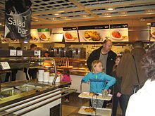 Although the cafes primarily serve Swedish food, the menu varies based on the culture, food and location of each store.[39] With restaurants in 38 different countries, the menu will incorporate local dishes including shawarma in Saudi Arabia, poutine in Canada, macarons in France, and gelato in Italy.[40] In Indonesia, the Swedish Meatballs recipe is changed to accommodate the country's Halal requirements.[41] Stores in Israel sell kosher food under rabbinical supervision.[42] The kosher restaurants are separated into dairy and meat areas.[43]