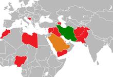 By the 1500s, Ismail I of Ardabil established the Safavid Empire,[116] with his capital at Tabriz.[110] Beginning with Azerbaijan, he subsequently extended his authority over all of the Iranian territories, and established an intermittent Iranian hegemony over the vast relative regions, reasserting the Iranian identity within large parts of Greater Iran.[117] Iran was predominantly Sunni,[118] but Ismail instigated a forced conversion to the Shia branch of Islam,[119] spreading throughout the Safavid territories in the Caucasus, Iran, Anatolia, and Mesopotamia. As a result, modern-day Iran is the only official Shia nation of the world, with it holding an absolute majority in Iran and the Republic of Azerbaijan, having there the first and the second highest number of Shia inhabitants by population percentage in the world.[120][121] Meanwhile, the centuries-long geopolitical and ideological rivalry between Safavid Iran and the neighboring Ottoman Empire led to numerous Ottoman–Iranian wars.[113]