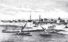 Ibn Battuta continued by ship south to the Swahili Coast, a region then known in Arabic as the Bilad al-Zanj ("Land of the Zanj"),[43] with an overnight stop at the island town of Mombasa.[44] Although relatively small at the time, Mombasa would become important in the following century.[45] After a journey along the coast, Ibn Battuta next arrived in the island town of Kilwa in present-day Tanzania,[46] which had become an important transit centre of the gold trade.[47] He described the city as "one of the finest and most beautifully built towns; all the buildings are of wood, and the houses are roofed with dīs reeds."[48]