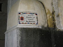 All that is known about Ibn Battuta's life comes from the autobiographical information included in the account of his travels, which records that he was of Berber descent,[1] born into a family of Islamic legal scholars in Tangier, Morocco, on 25 February 1304, during the reign of the Marinid dynasty.[3] He claimed descent from a Berber tribe known as the Lawata.[4] As a young man he would have studied at a Sunni Maliki madh'hab (Islamic jurisprudence school), the dominant form of education in North Africa at that time.[5] Maliki Muslims requested Ibn Battuta serve as their religious judge as he was from an area where it was practised.[6]