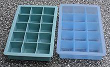 Ice cube trays are designed to be filled with water, then placed in a freezer until the water freezes into ice, producing ice cubes.[1] Ice trays are often flexible, so the frozen cubes can be easily removed by flexing the tray. "Twist ice trays" have a simple spring-loaded mechanism with a lever that is used to turn the tray upside down and flex at the same time, such that the cubes that drop are collected in a removable tray below. The spring returns the ice cube tray to its upright position without having to remove it from the freezer, which can save time and reduces accidental mess—though the tray has to be removed to be collected, and the ice cube tray still has to be removed to be refilled. An alternative system is an aluminium tray with a lever that raises the ice cubes, freeing them from the tray.[2] A motorized version of this is found in most automatic ice-making freezers.[3]