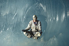 This type of cave was first formally described by Englishman Edwin Swift Balch in 1900,[1] who suggested the French term glacieres should be used for them, even though the term ice cave was then, as now, commonly used to refer to caves simply containing year-round ice. Among speleologists, ice cave is the proper English term.[2]