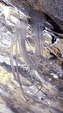 Needle ice - Infiltrating water that freezes within the bedrock can sometimes be forced into the cave passage.