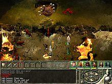 Icewind Dale II's gameplay is focused on combat. The combat system is a real-time adaptation of the turn-based system used in D&D Third Edition, which caused the developers to remove certain aspects, such as "attacks of opportunity".[7] Dice rolls are simulated by the game. In place of the turn-based rounds used in D&D, characters have independent rounds, during which they may execute one or more actions, depending on such factors as the duration of the action. The player can pause the game and issue orders to characters at any time. Each character can carry a limited amount of items.[1]