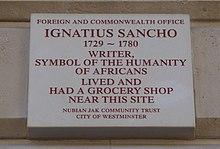 - ^ a b c City Council of Westminster. "Foreign & Commonwealth Office and King Charles Street and Ignatius Sancho". Audio Guide to the Road to Abolition Trail. Archived from the original on 28 December 2013. Retrieved 10 January 2013.