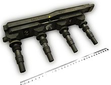Where coils are individually applied per cylinder, they may all be contained in a single molded block with multiple high-tension terminals. This is commonly called a coil-pack.