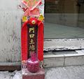 - One outside the house at the front door on the ground, dedicated to Tudigong, an Earth Deity. This tablet usually reads simplified Chinese: 门口土地财神; traditional Chinese: 門口土地財神 (less commonly 门口土地福神; 門口土地福神).