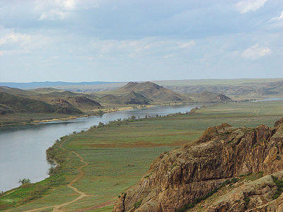 Earlier mentions of Ili river can be traced back to the Mahmud al-Kashgari's dictionary of Turkic languages, the Dīwānu l-Luġat al-Turk (written in 1072–74). In the book, the author defines it in the following way: "Ili, the name of a river. Turkic tribes of Yaghma, Tokhsi and Chiglig live on its banks. Turkish countries regard the river as their Jayhoun (Amu Darya)."[5] The name possibly originated from Uyghur word Il, meaning hook, resembling the river's geographical shape.[6]